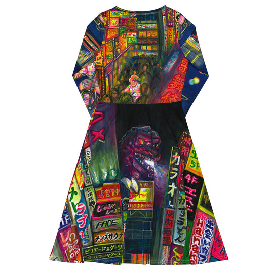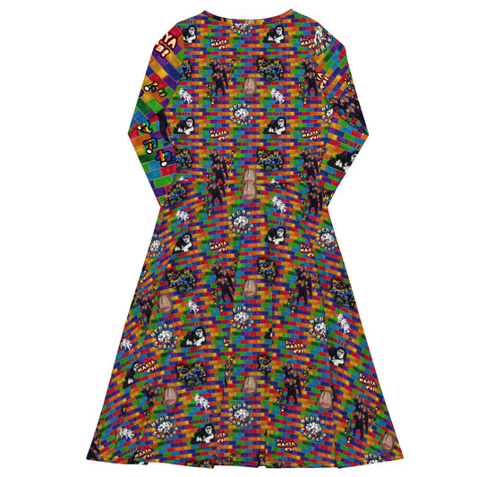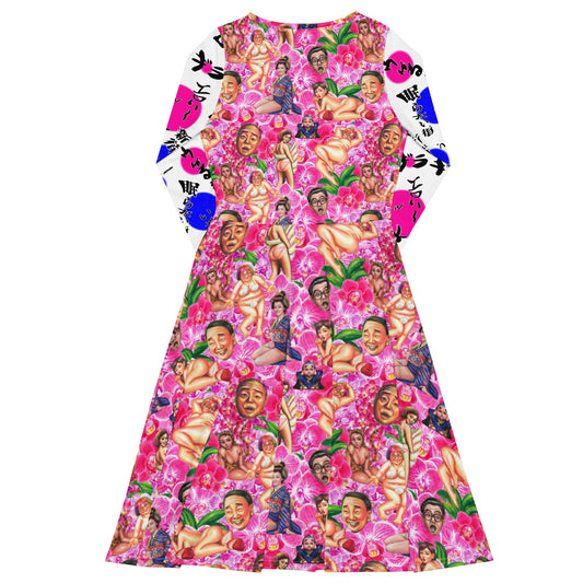 All-over print long sleeve midi dress